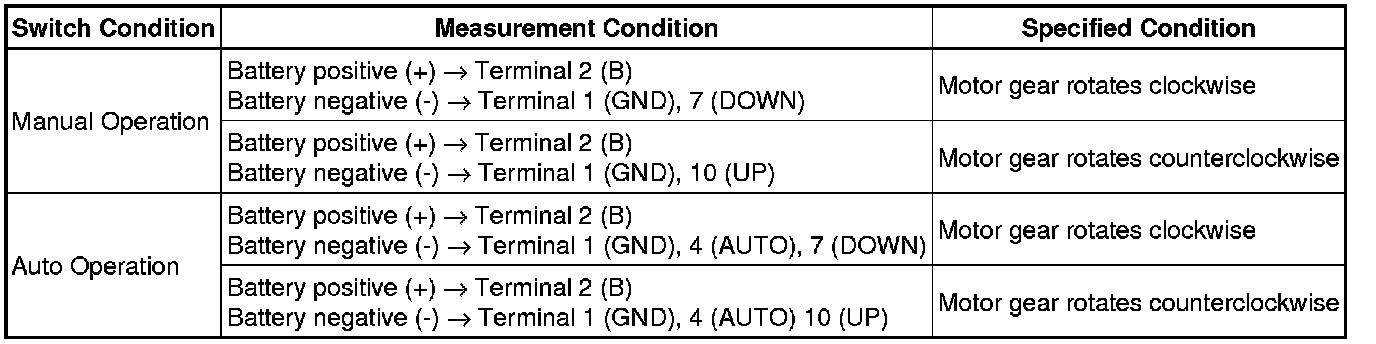 * If the result is not as specified, replace the rear power window regulator motor assembly (for rear LH side).