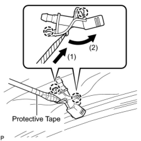 (e) Engage the 2 claws and install the washer nozzle sub-assembly.
