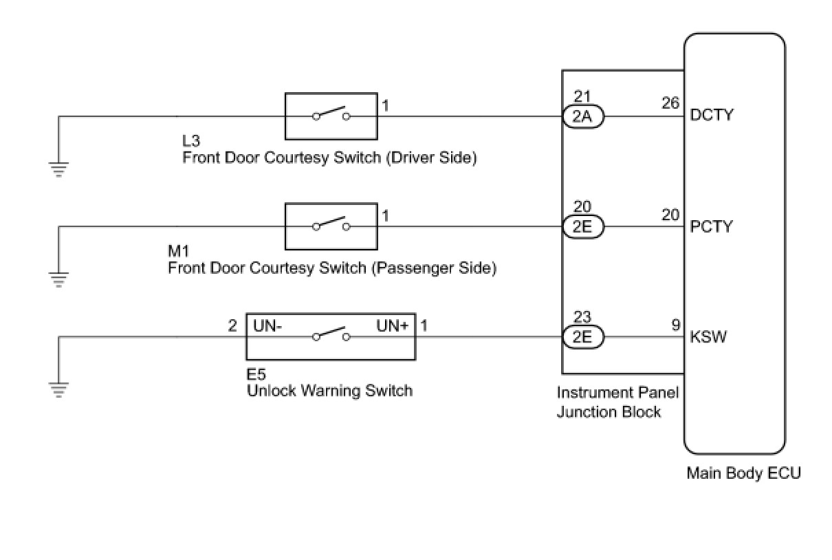 3. CHECK HARNESS AND CONNECTOR (UNLOCK WARNING SWITCH - JUNCTION BLOCK)