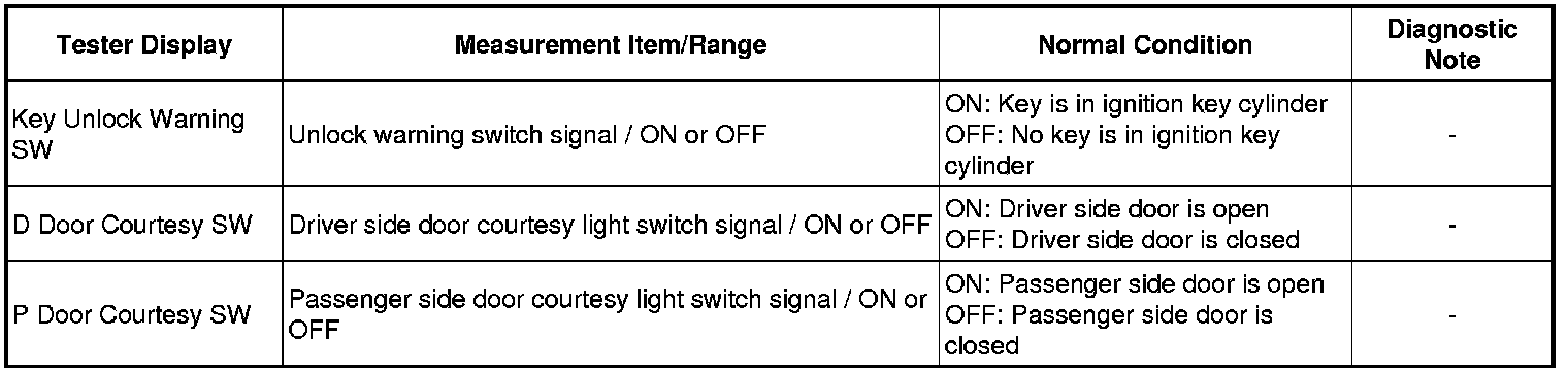 1. READ VALUE USING TECHSTREAM (UNLOCK WARNING SWITCH AND COURTESY SWITCHES)