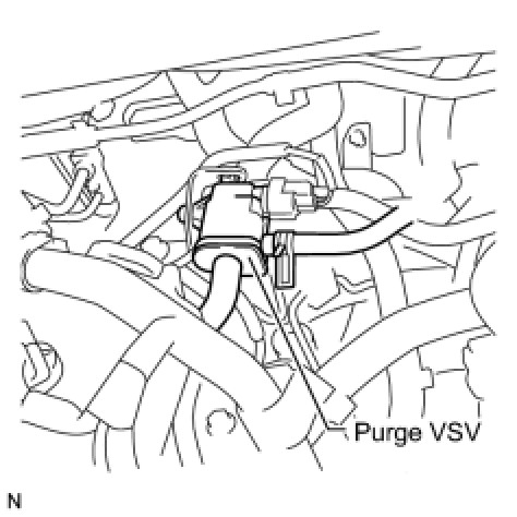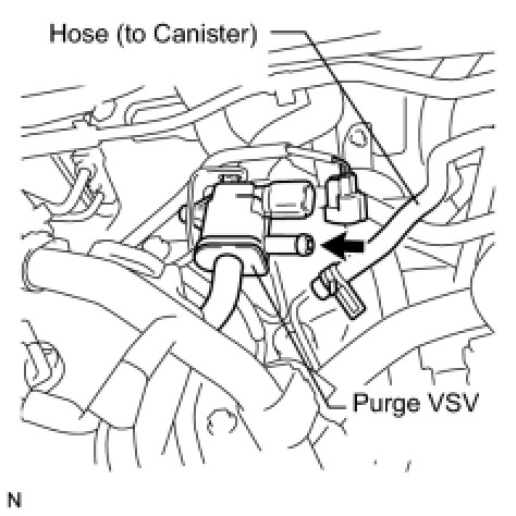 (a) Disconnect the hose (connected to the intake manifold) from the purge VSV.