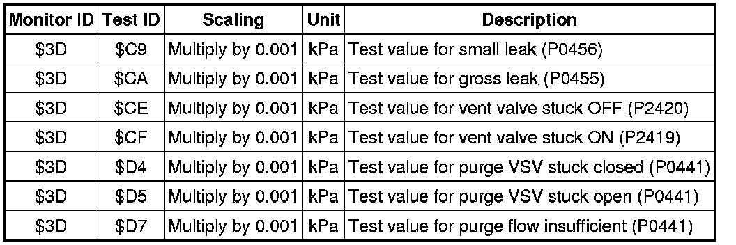 If you use a generic scan tool, multiply the value by the scaling value listed below.