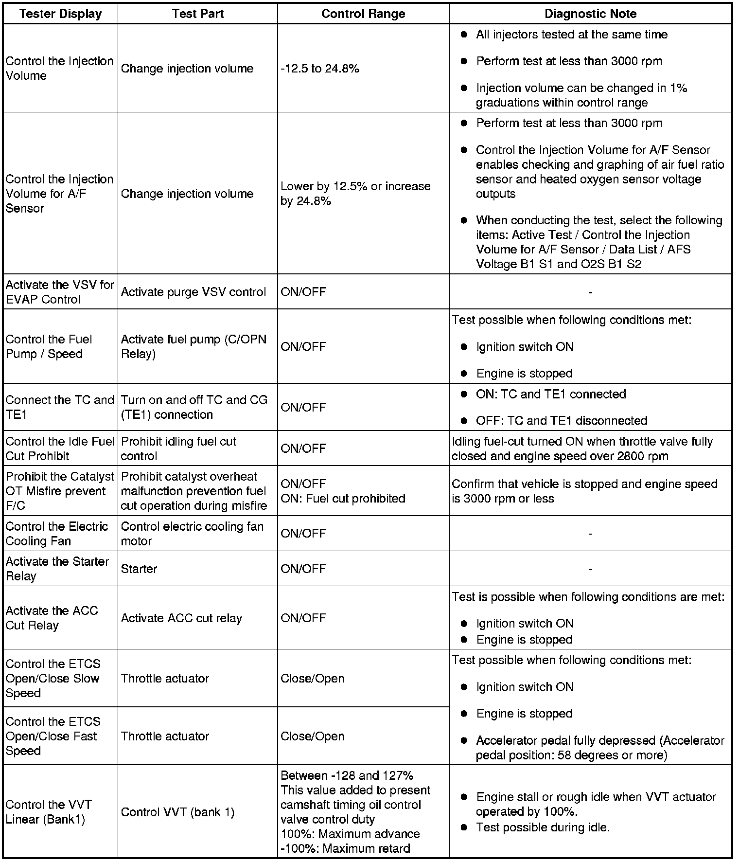 * The Active Test item Check the Cylinder Compression will automatically turn off 255 seconds after the Active Test is turned on.