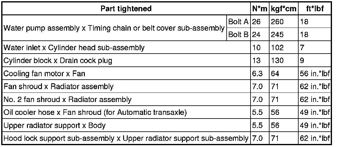 SPECIFICATIONS: 2ZR-FE COOLING: TORQUE SPECIFICATIONS
