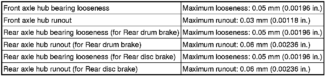 SPECIFICATIONS: AXLE AND DIFFERENTIAL: SERVICE DATA