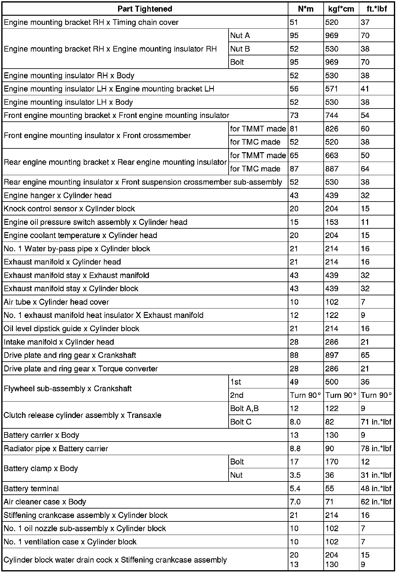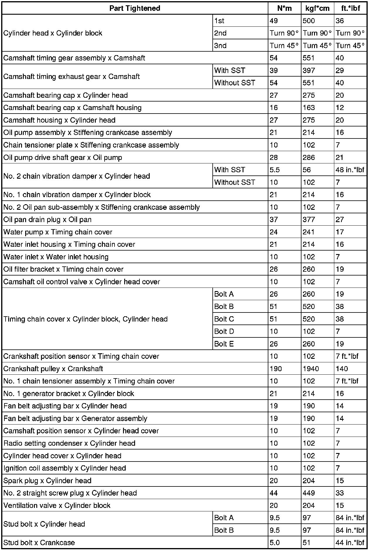 SPECIFICATIONS: 2ZR-FE ENGINE MECHANICAL: TORQUE SPECIFICATIONS