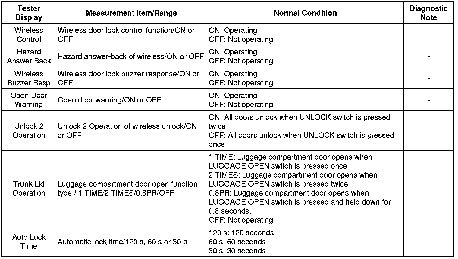 DOOR LOCK: WIRELESS DOOR LOCK CONTROL SYSTEM (w/ Smart Key System): DATA LIST / ACTIVE TEST