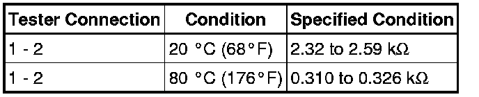 (2) If the resistance is not as specified, replace the engine coolant temperature sensor.