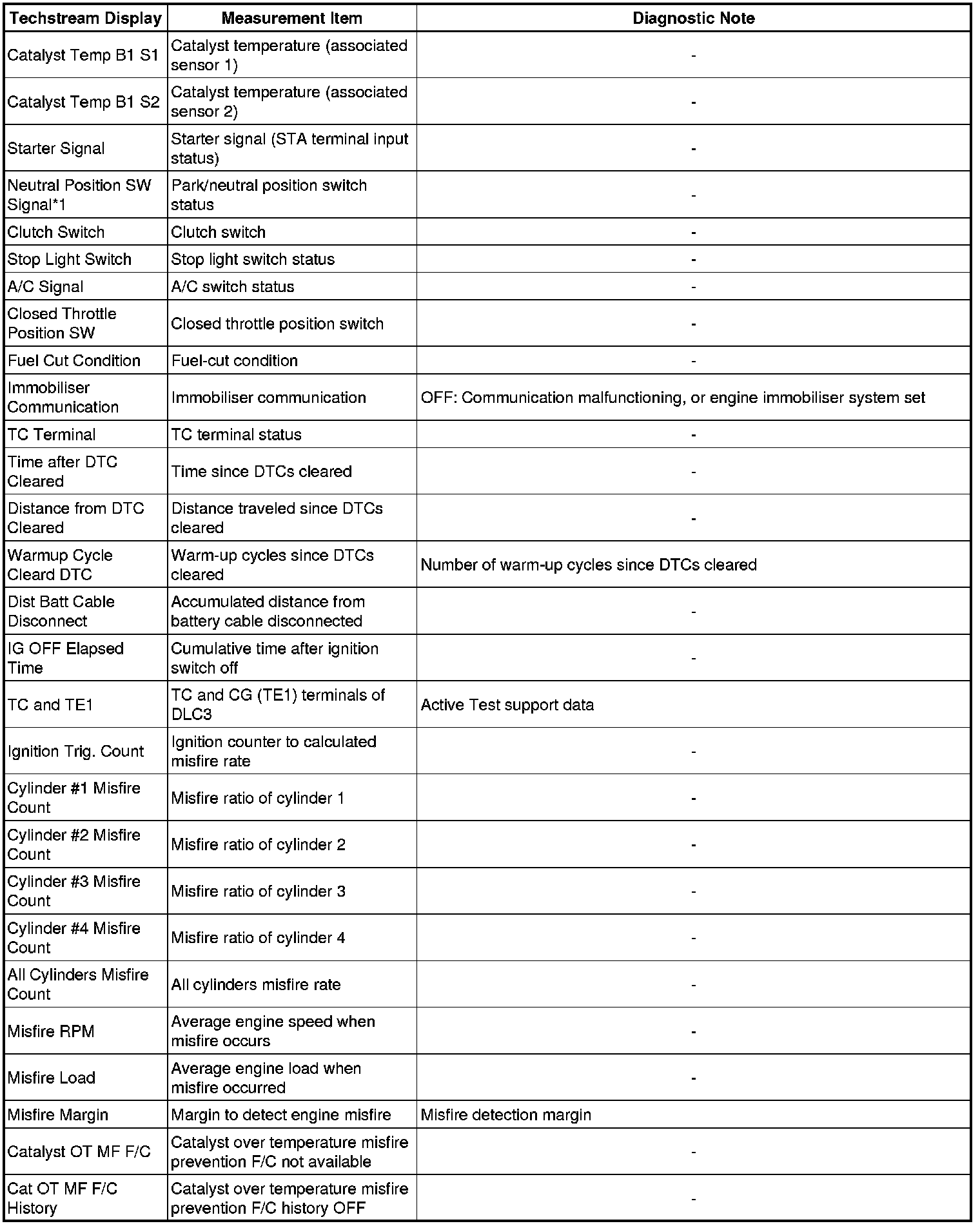 * 1 sets of data from when the DTC was set.