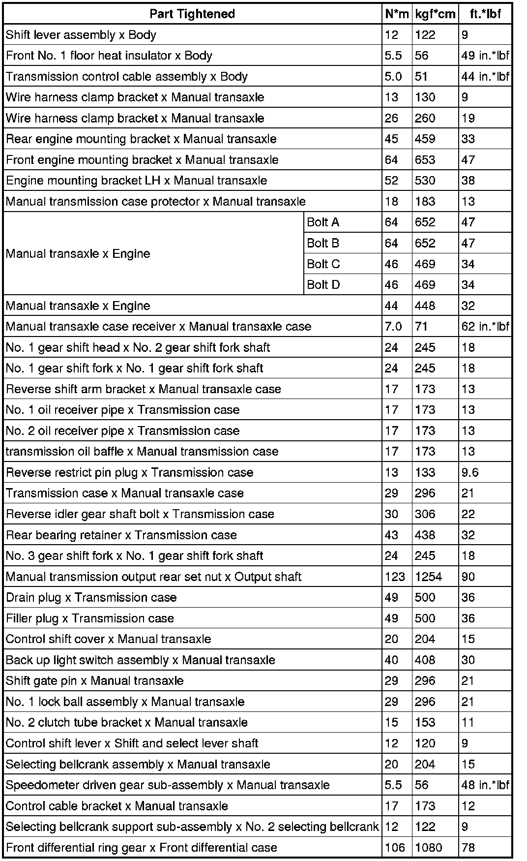 SPECIFICATIONS: E351 MANUAL TRANSMISSION / TRANSAXLE: TORQUE SPECIFICATIONS