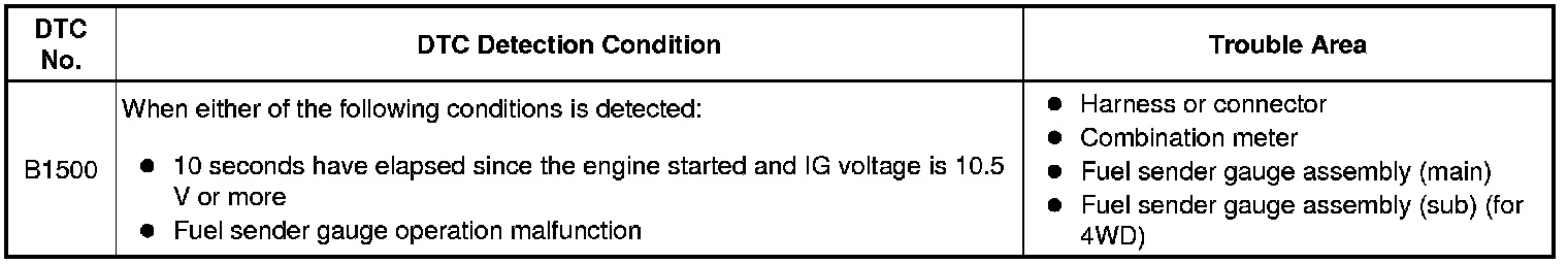 This DTC is output when the combination meter detects a fuel sender gauge malfunction via the direct line.
