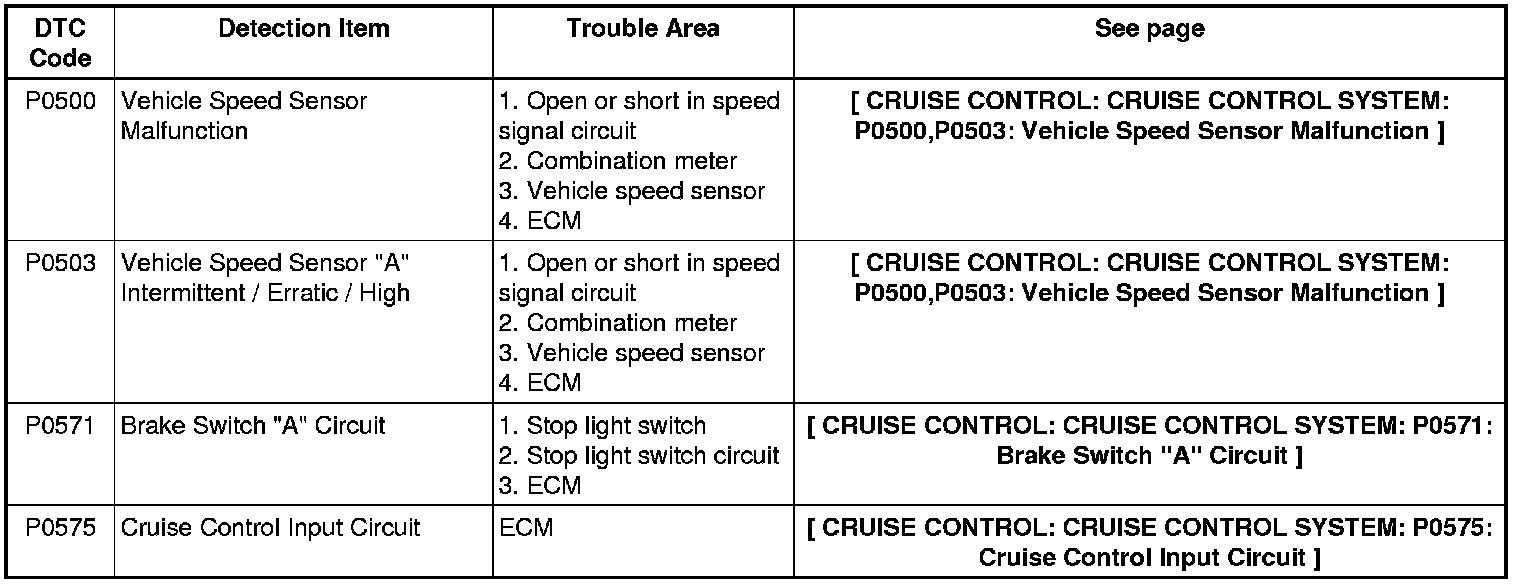 CRUISE CONTROL: CRUISE CONTROL SYSTEM: DIAGNOSTIC TROUBLE CODE CHART