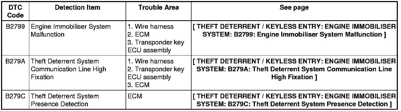 THEFT DETERRENT / KEYLESS ENTRY: ENGINE IMMOBILISER SYSTEM: DIAGNOSTIC TROUBLE CODE CHART