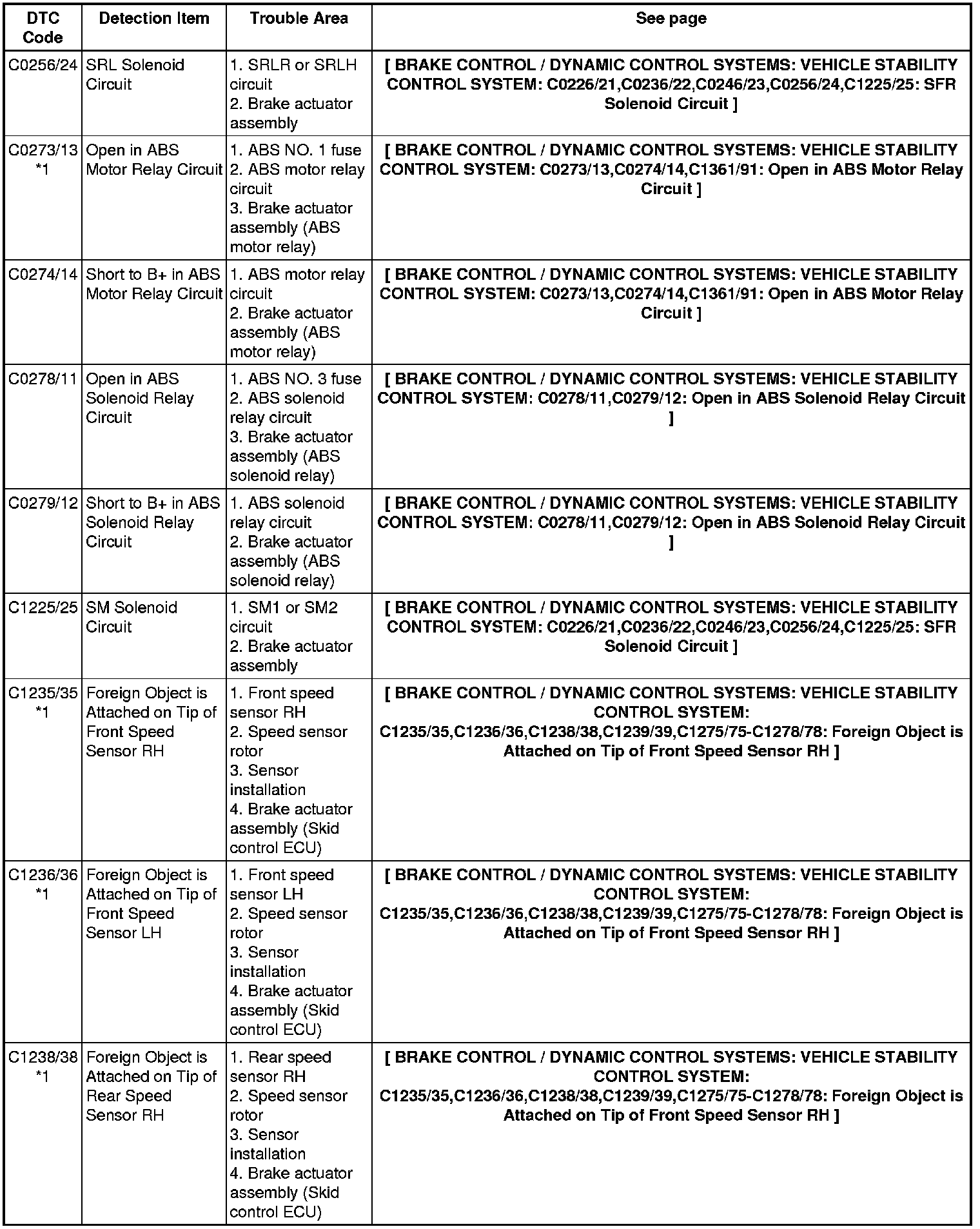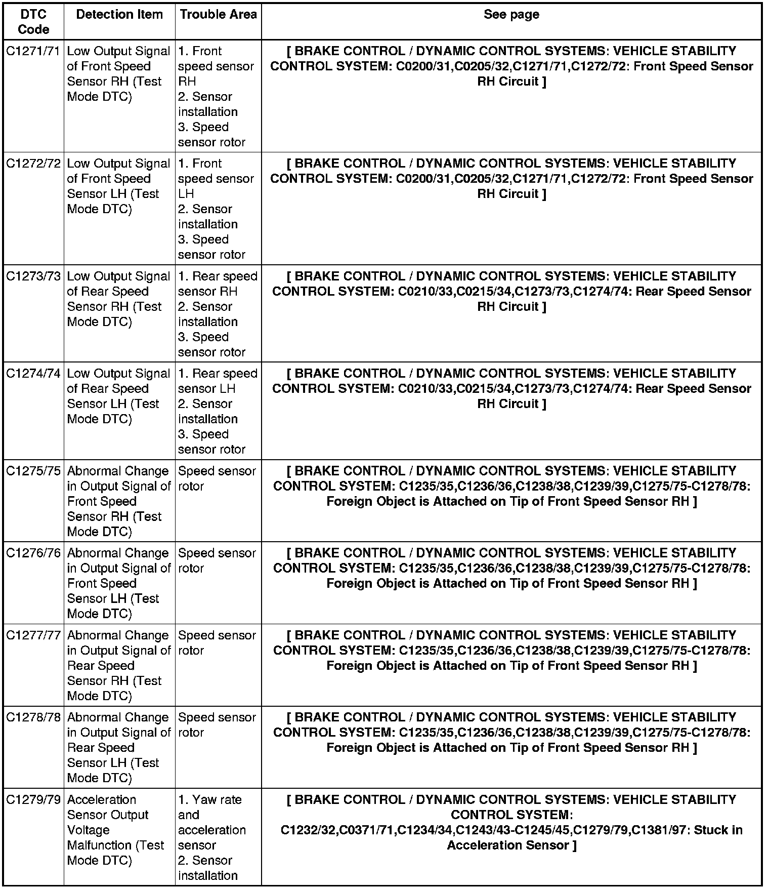 BRAKE CONTROL / DYNAMIC CONTROL SYSTEMS: VEHICLE STABILITY CONTROL SYSTEM (for 2AZ-FE): DIAGNOSTIC TROUBLE CODE CHART