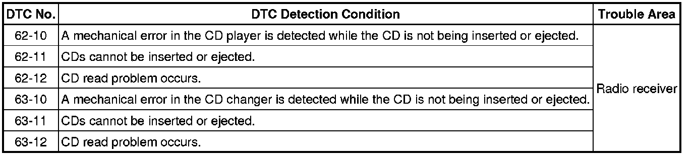 AUDIO / VIDEO: AUDIO AND VISUAL SYSTEM: 62-10-62-12,63-10-63-12: CD Player Mechanical Error