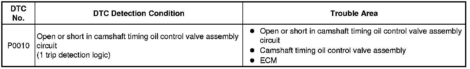 2AZ-FE ENGINE CONTROL: SFI SYSTEM: P0010: Camshaft Position "A" Actuator Circuit (Bank 1)