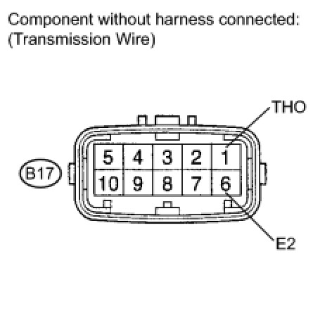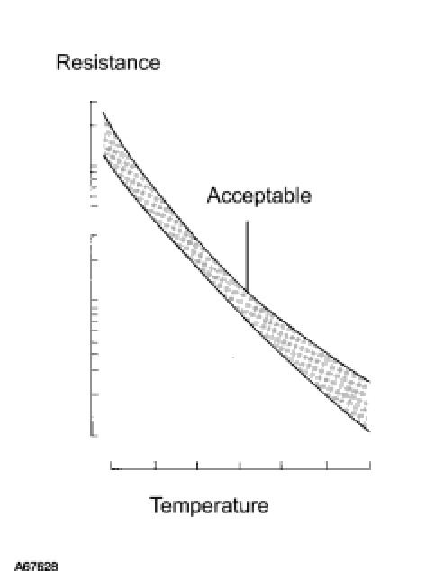 The sensor resistance changes with the transmission fluid temperature. As the temperature becomes higher, the sensor resistance decreases.