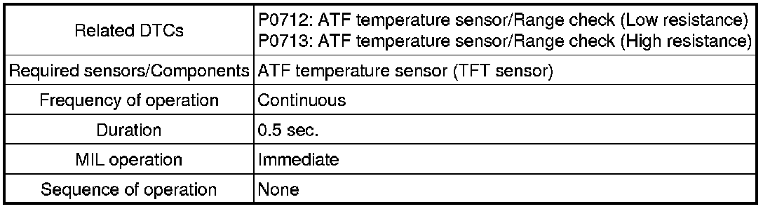 If a circuit related to the ATF temperature sensor become open, P0713 is immediately set (in 0.5 second).