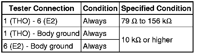 Measure the resistance between terminal THO1 (THO) and body ground.
