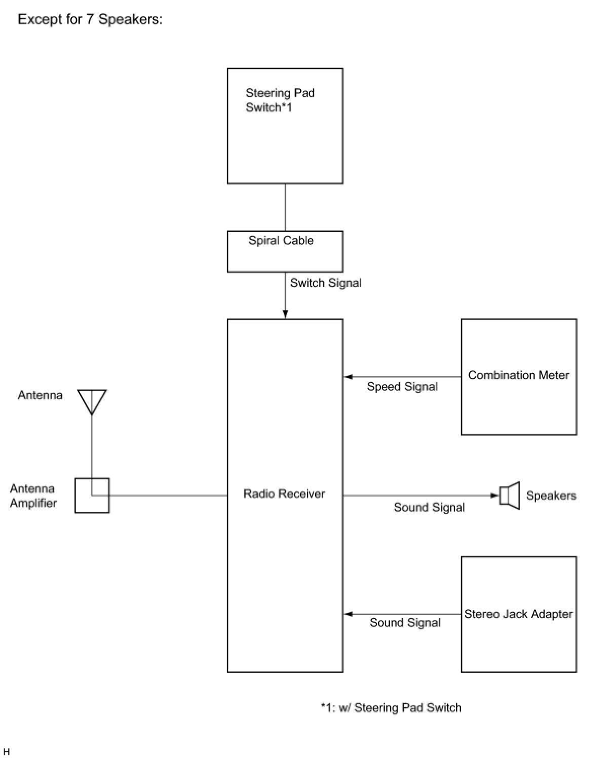 (a) The ASL (Automatic Sound Levelizer) function automatically adjusts the sound data in order to enable to hear the clear sound from the audio system even when vehicle noise increases (as vehicle noise increases, the volume is turned up etc.). Vehicle speed signals are received from the combination meter and used for the ASL (Automatic Sound Levelizer).