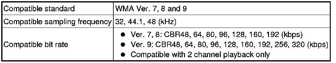 * As for MP3/WMA files written in any unlisted format, the contents of the files may not play normally or the file names or folder names may not display correctly.