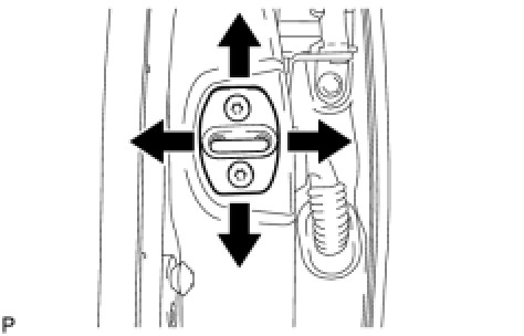 (f) Using a "TORX" socket wrench (T40), tighten the striker mounting screws after the adjustment.