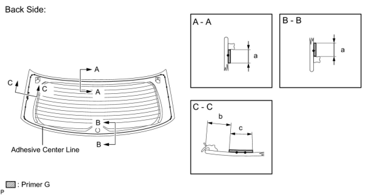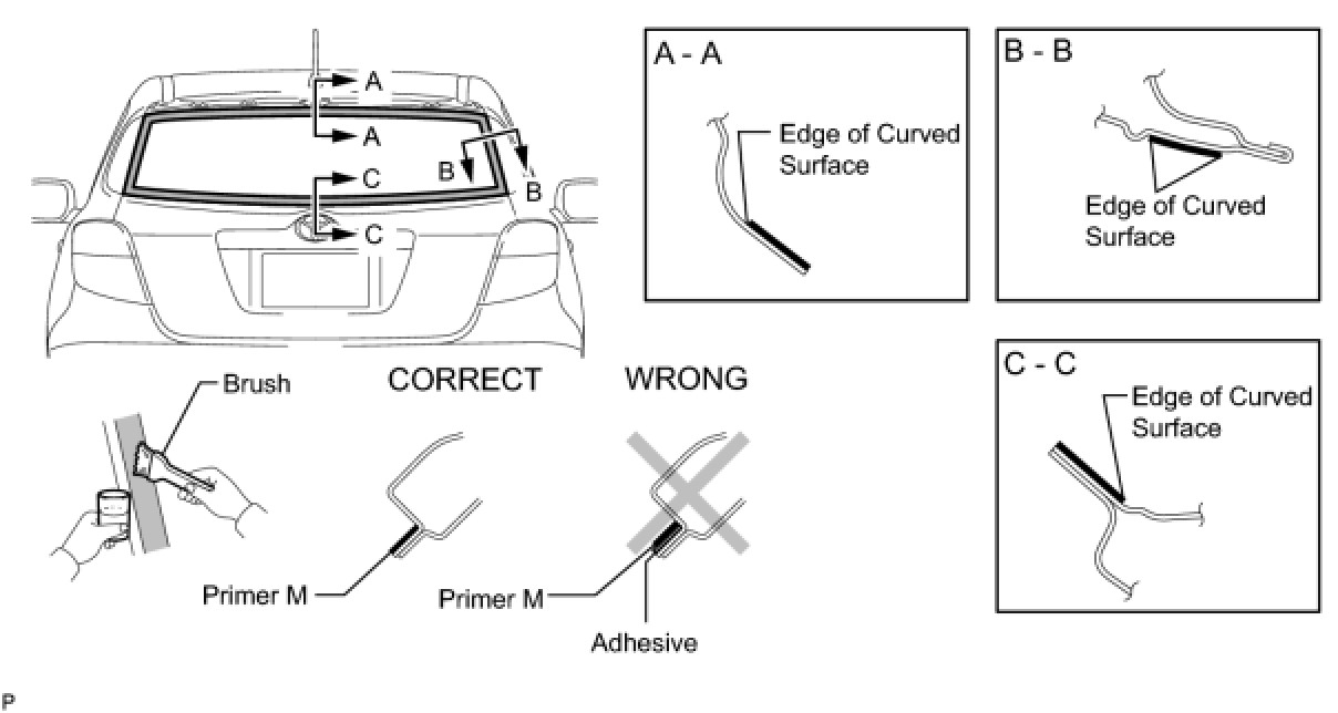 (a) Using a brush or a sponge, coat the application area of the a new back window glass adhesive dam with Primer G.