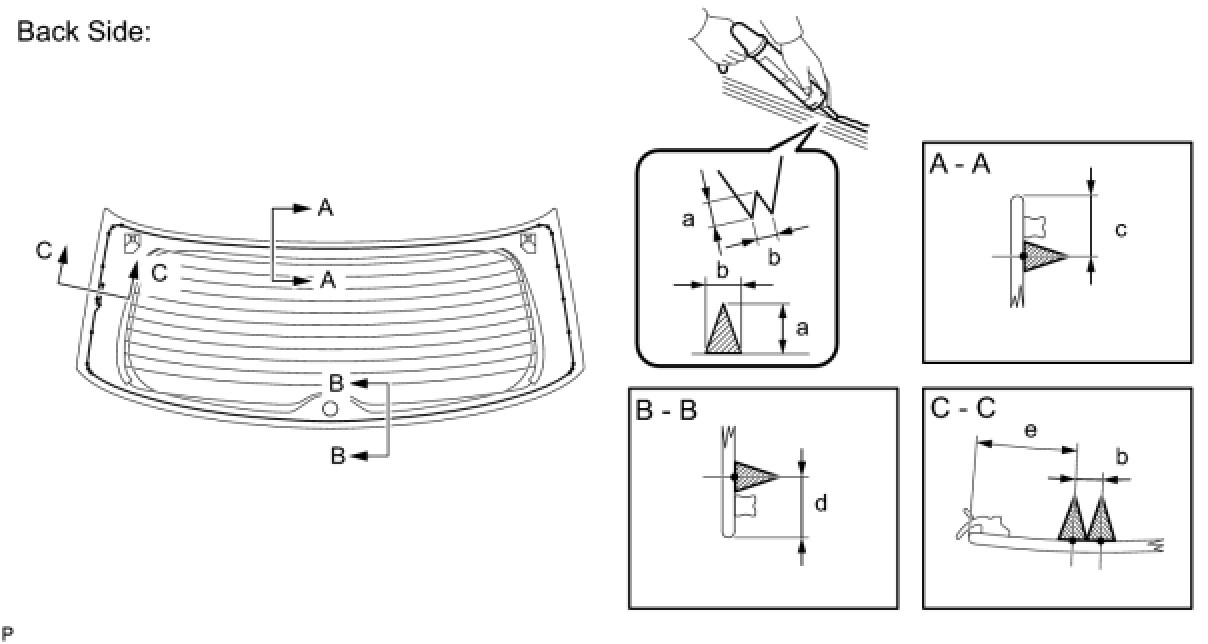 (3) Apply adhesive to the back door glass as shown in the illustration.