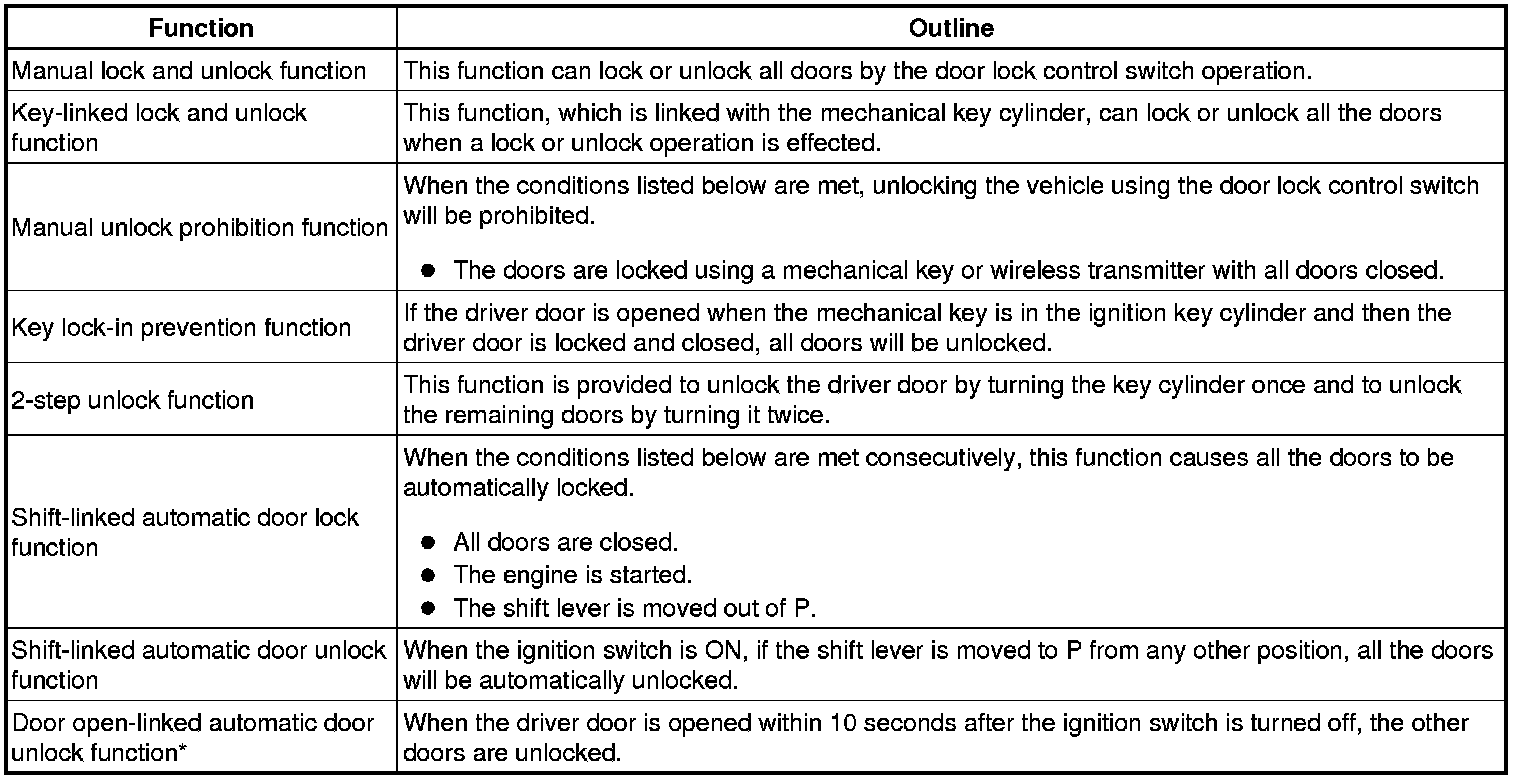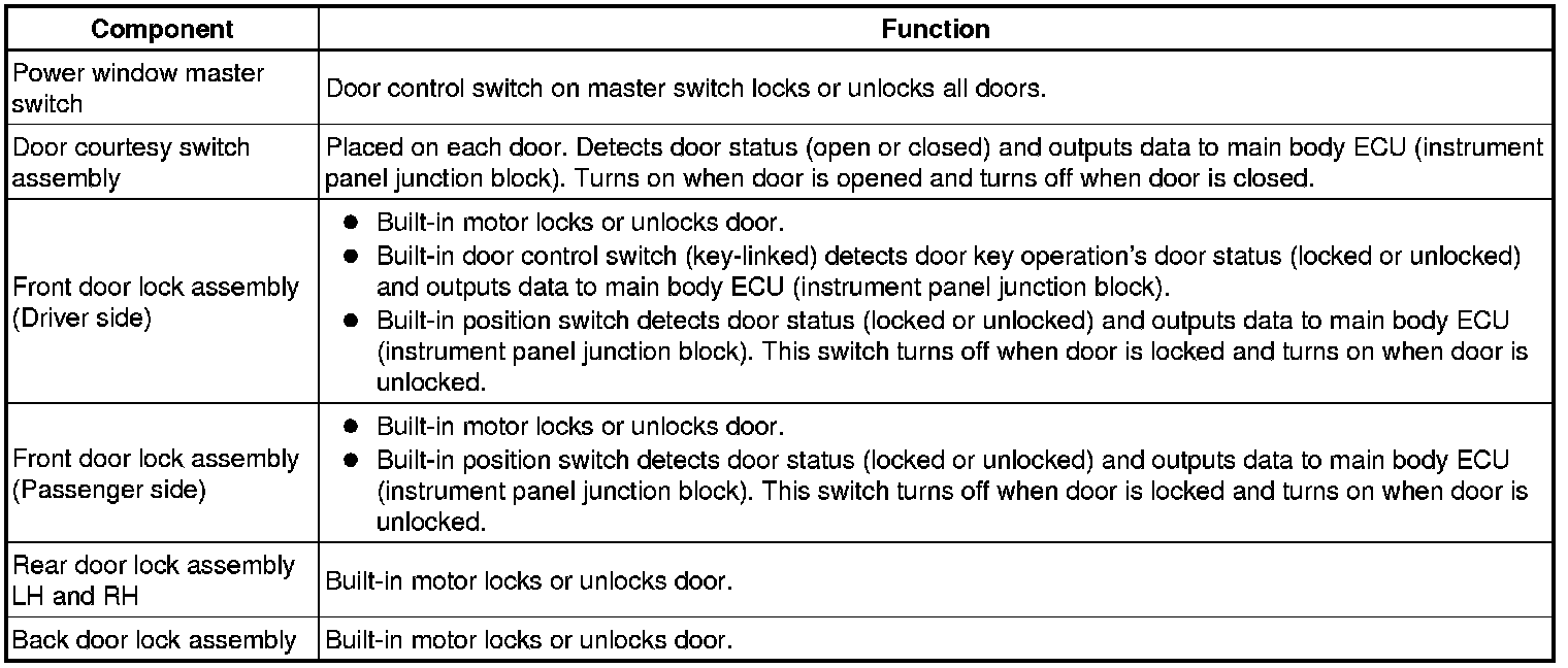 DOOR LOCK: POWER DOOR LOCK CONTROL SYSTEM: SYSTEM DESCRIPTION