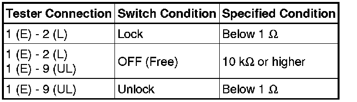 DOOR LOCK: DOOR CONTROL SWITCH: INSPECTION