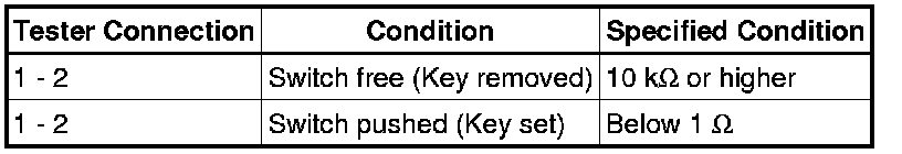 (b) If the result is not as specified, replace the unlock warning switch assembly.