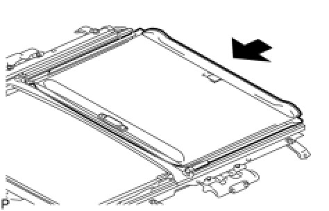 (a) Insert the sunshade trim into the sliding roof housing sub-assembly.