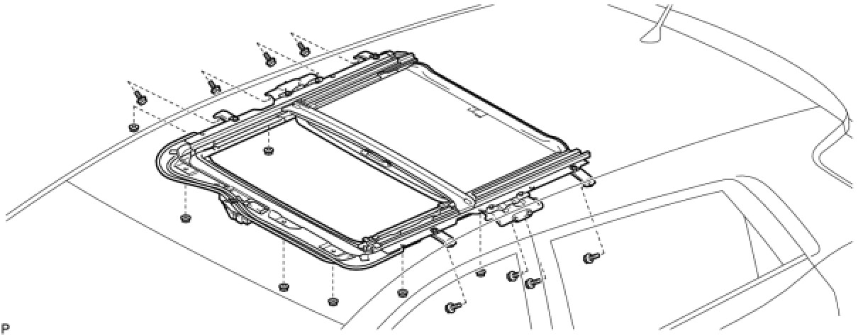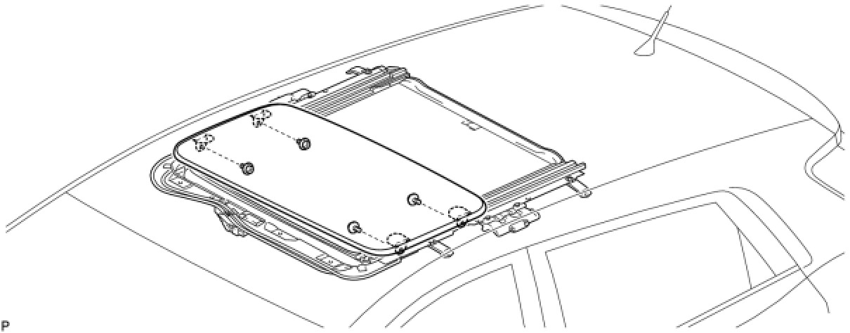(d) After adjusting the sliding roof glass, using a T25 "TORX" socket wrench, install the sliding roof glass sub-assembly with the 4 screws.