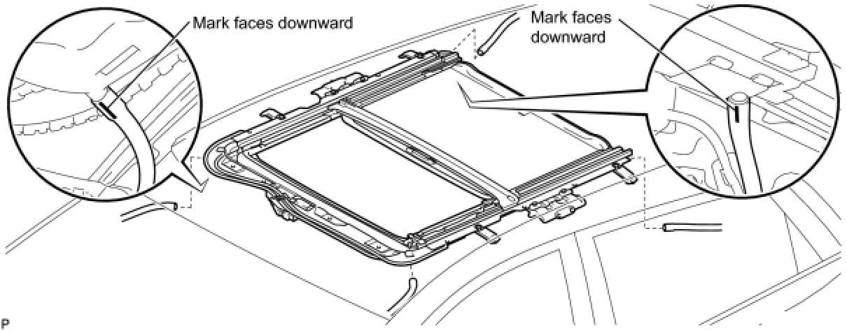 (d) Connect the 4 sliding roof drain hoses so that each mark faces downward.