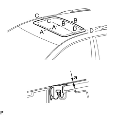 (1) Check the difference in level for "a" between the roof panel and the upper surface of the weatherstrip when the sliding roof glass is fully closed.