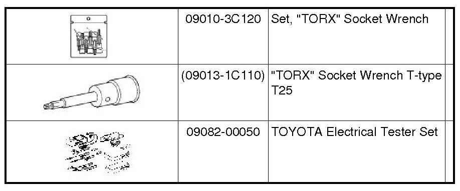 PREPARATION: SLIDING ROOF / CONVERTIBLE: RECOMMENDED TOOLS