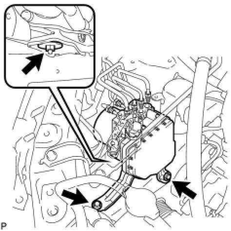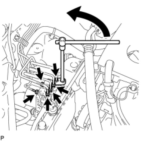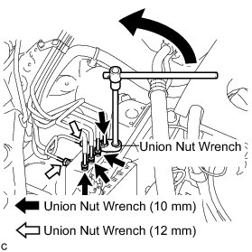 (c) Using a union nut wrench (10 mm) and union nut wrench (12 mm), disconnect the 6 brake lines from the actuator assembly.