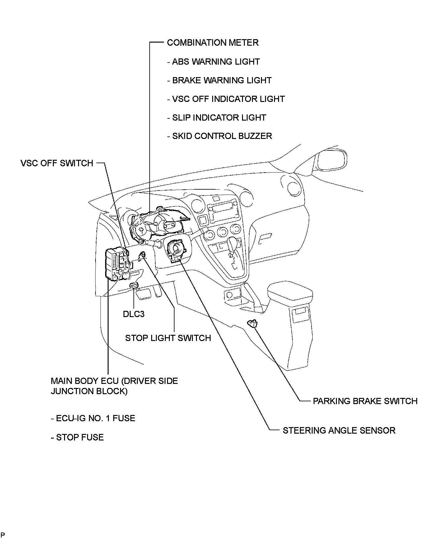 BRAKE CONTROL / DYNAMIC CONTROL SYSTEMS: VEHICLE STABILITY CONTROL SYSTEM (for 2AZ-FE): PARTS LOCATION