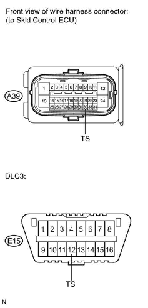 1. CHECK HARNESS AND CONNECTOR (SKID CONTROL ECU - TS of DLC3)