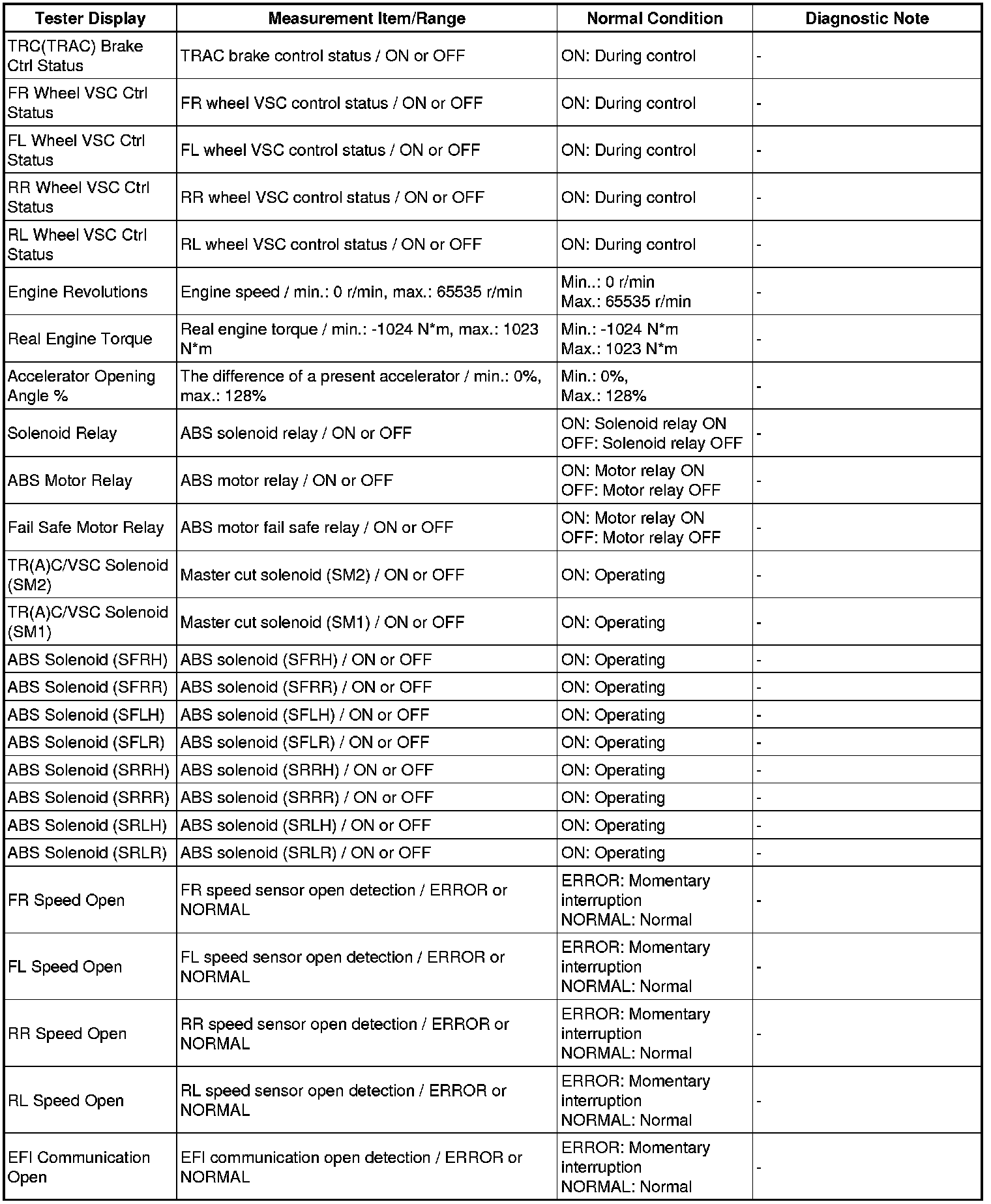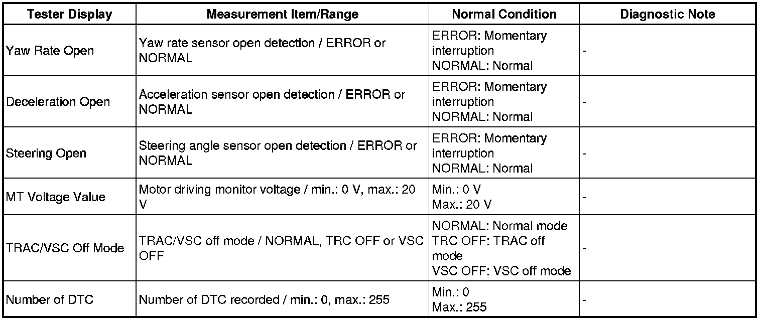 BRAKE CONTROL / DYNAMIC CONTROL SYSTEMS: VEHICLE STABILITY CONTROL SYSTEM (for 2AZ-FE): DATA LIST / ACTIVE TEST