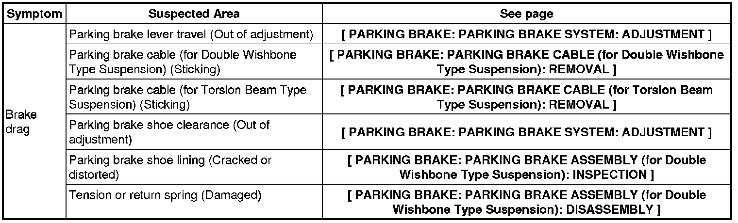 PARKING BRAKE: PARKING BRAKE SYSTEM: PROBLEM SYMPTOMS TABLE