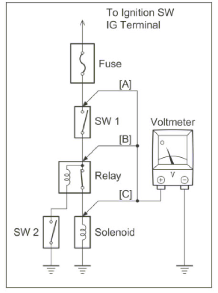 - [C] - Ignition SW, SW1 and Relay on (SW2 off)