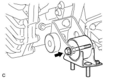 (a) Temporarily install the rear engine mounting insulator to the engine mounting bracket with the through bolt.