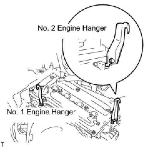 (a) Install the No. 1 and No. 2 engine hangers with new bolts as shown in the illustration.