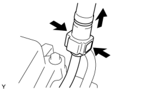 (b) Pinch the retainer as illustrated, then pull the fuel tube connector out of the pipe.