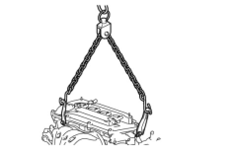 (b) Using an engine sling device and a chain block, suspend the engine assembly with transaxle.