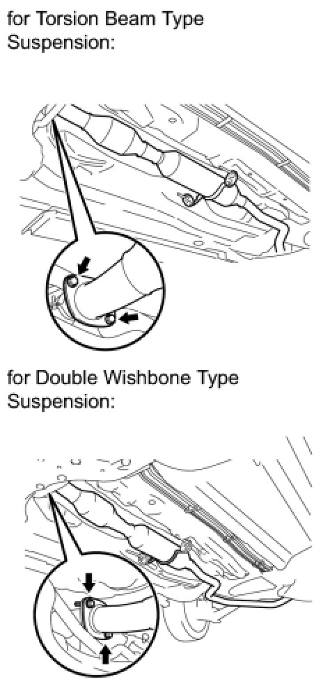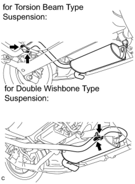 (e) Connect the tail exhaust pipe assembly to the 3 exhaust pipe supports. (for Torsion beam type suspension)