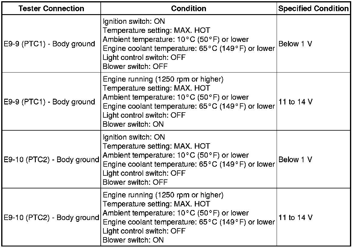 OK -- REPAIR OR REPLACE HARNESS OR CONNECTOR (PTC HEATER - BODY GROUND)