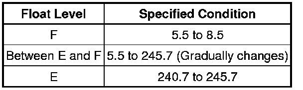 (c) If the value is not as specified, replace the fuel sender gauge assembly.
