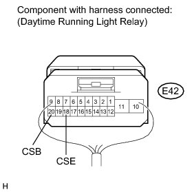 (a) Disconnect the F1 automatic light control sensor connector and E42 daytime running light relay connector.